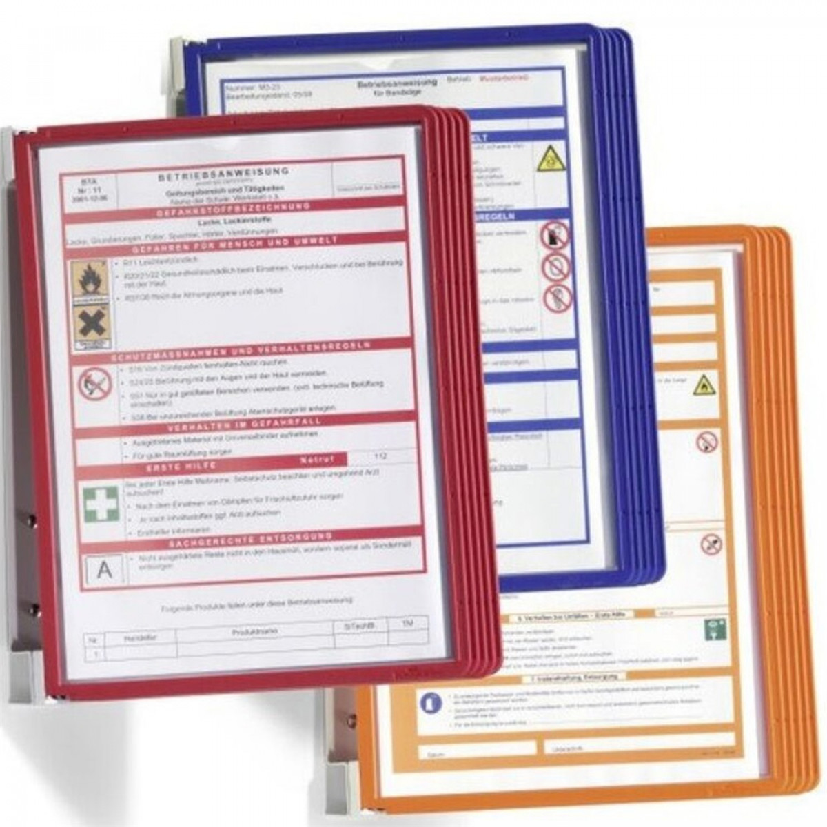 Fém fali tartó 5 db SHERPA® A4 méretű panellel. Piros, sötétkék vagy narancssárga színben. Katalóguskód: 27325