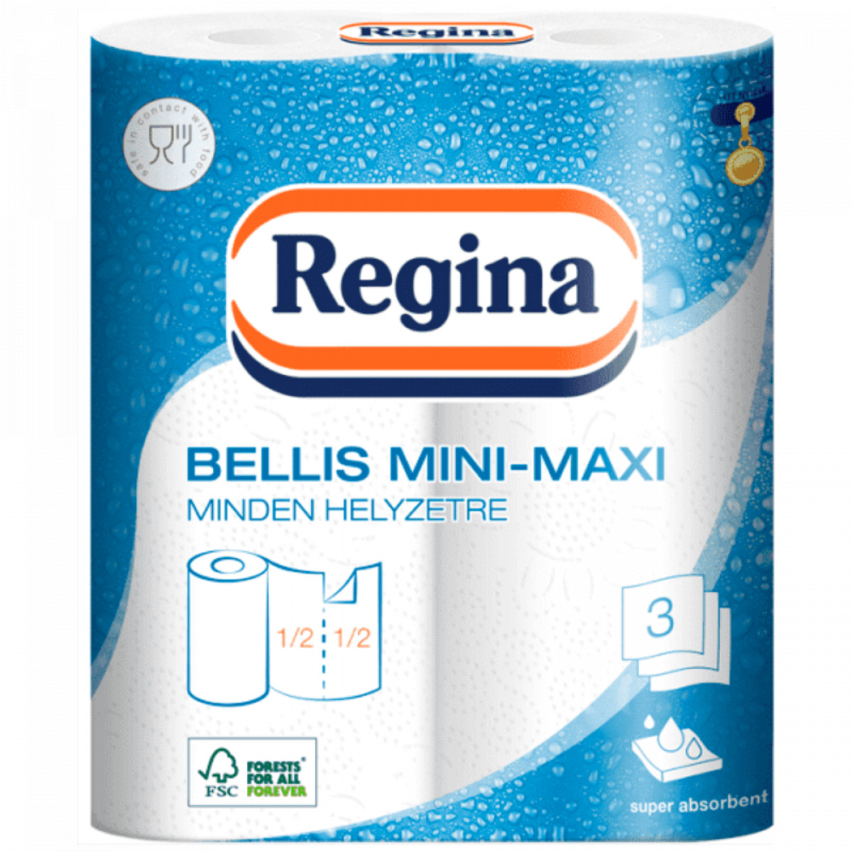 Háztartási papírtörlő kéztörlő 3 rétegű 100 lap/tekercs 2 tekercs/csomag Bellis Mini-Maxi fehér