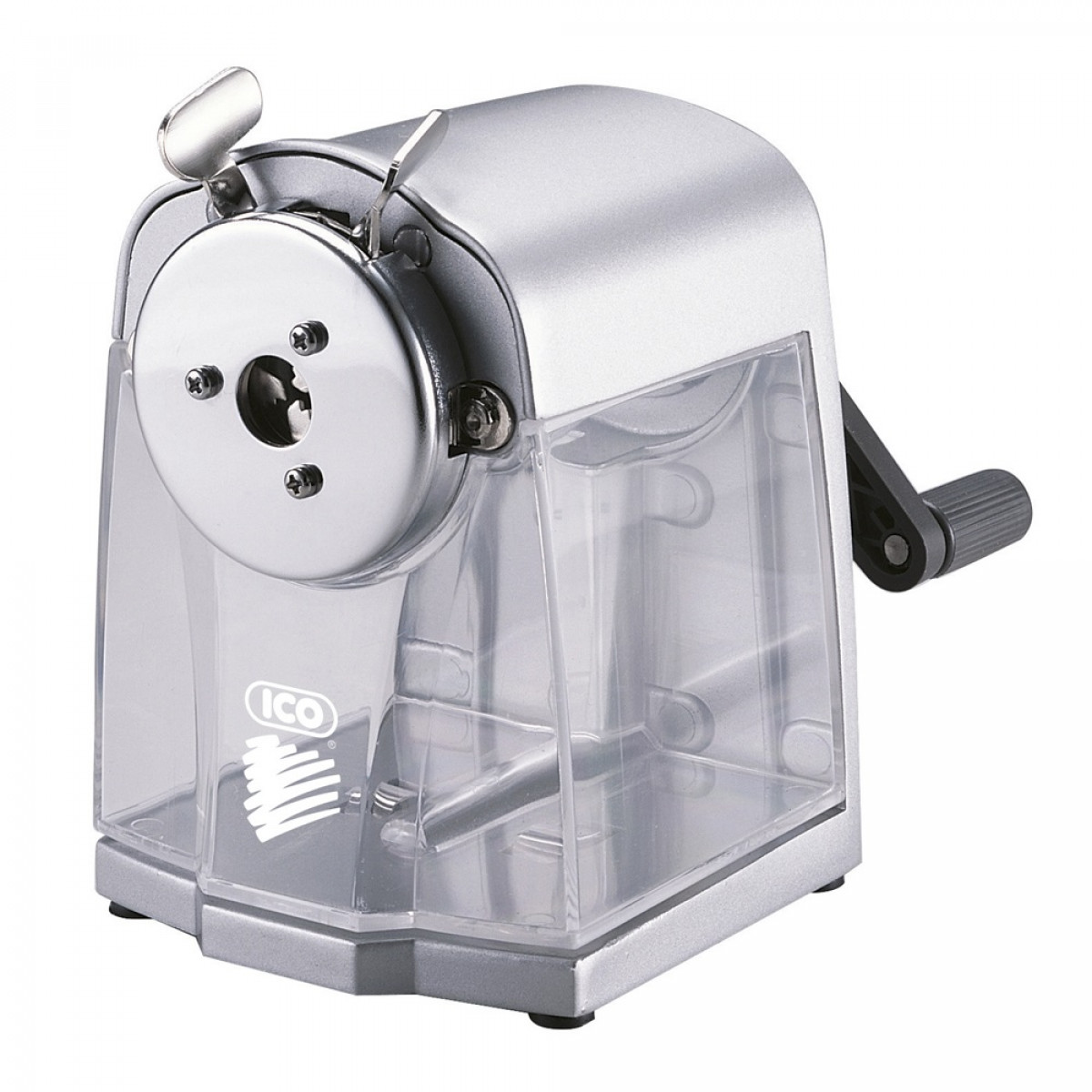 Multifunkciós asztali hegyezőgép. Alkalmas vékony és vastag ceruzák hegyezésére (7mm - 11,6 mm-ig), továbbá háromszögletű ceruzák hegyezésére is. Katalóguskód: 1180Hiteles tájékoztatás: Elkötelezettek vagyunk termékeink biztonságának garantálásáért, nyomon követjük a termékbiztonsággal kapcsolatos valamennyi európai uniós és hazai szabályozást és biztosítjuk termékeink azoknak történő megfelelését. Az EU 2023/988-as számú Általános Termékbiztonsági Rendeletét (GPSR) is alkalmazzuk, így ha a termékeink biztonságát illetően fogyasztóként kérdése, észrevétele van, vagy esetleg balesetről van tudomása, kérjük, írja meg nekünk. GPSR: ICO ZRT 2013 Pomáz, ICO út 5.; EU post@ico.eu www.ico.eu