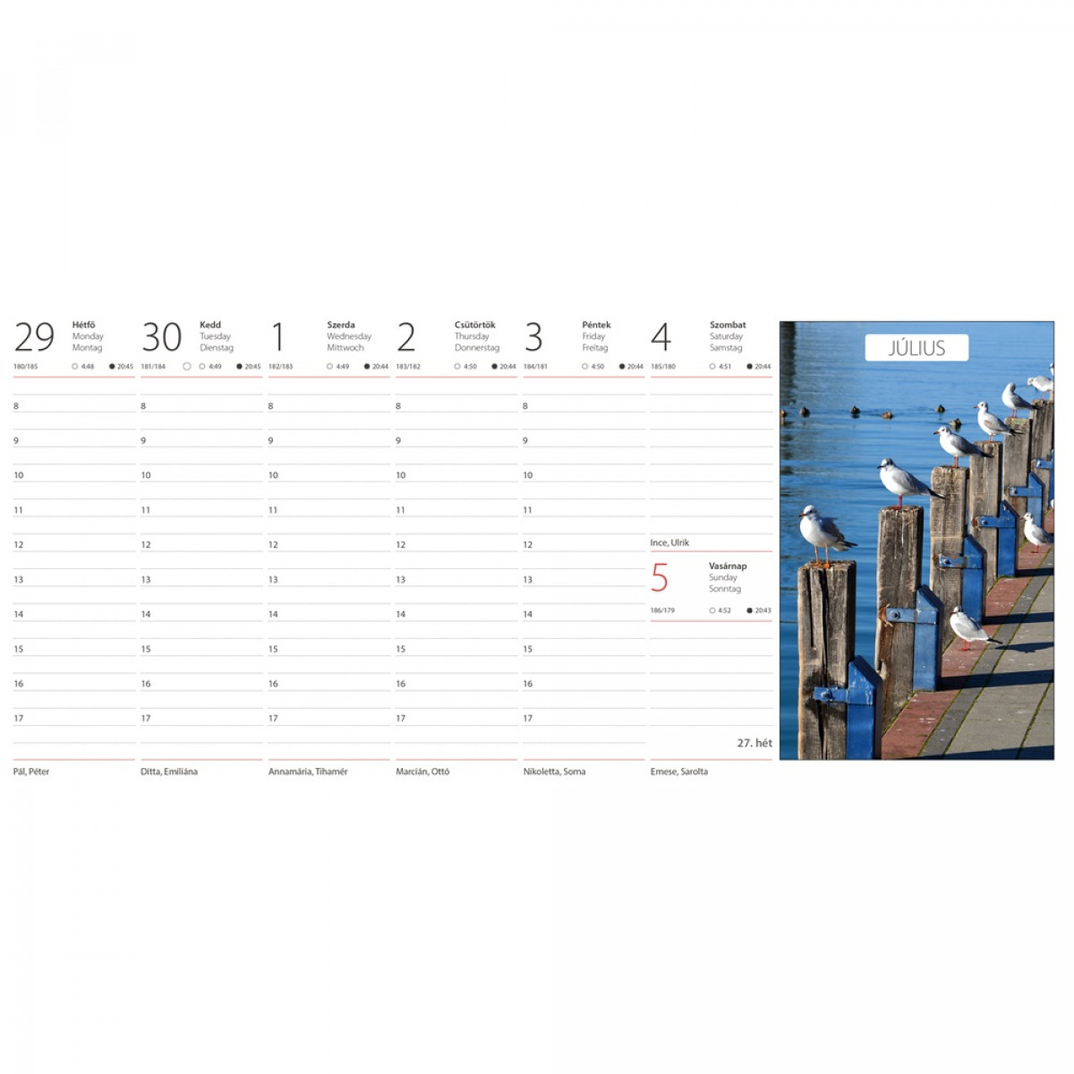 • Heti beosztású naptár, amely színes képekkel díszített.