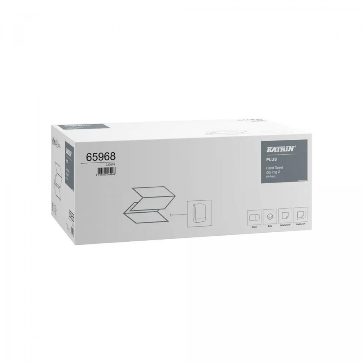 Kéztörlő 2 rétegű V hajtogatású 150 lap/cs 20 csomag/karton Katrin Plus Zig Zag 2_65968 hófehér