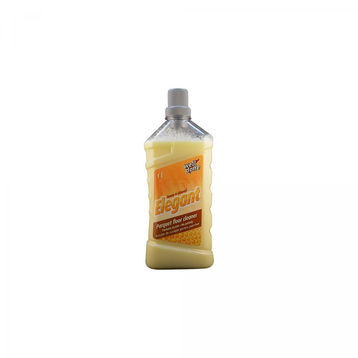 Well Done Elegant padlótisztítószer parkettához könnyen és hatékonyan távolítja el a szennyeződéseket, méhviasz tartalma ápolja a parketta felületet. Foltmentesen szárad,