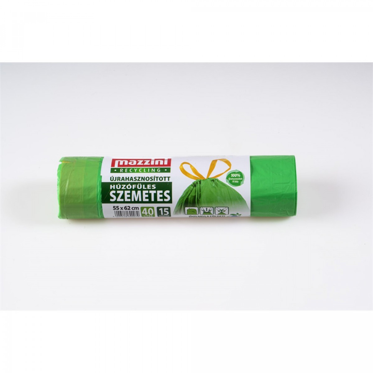 Szemeteszsák zárószalagos 40 liter 55 x 62 cm 15 db/tekercs újrahasznosított Mazzini_zöld