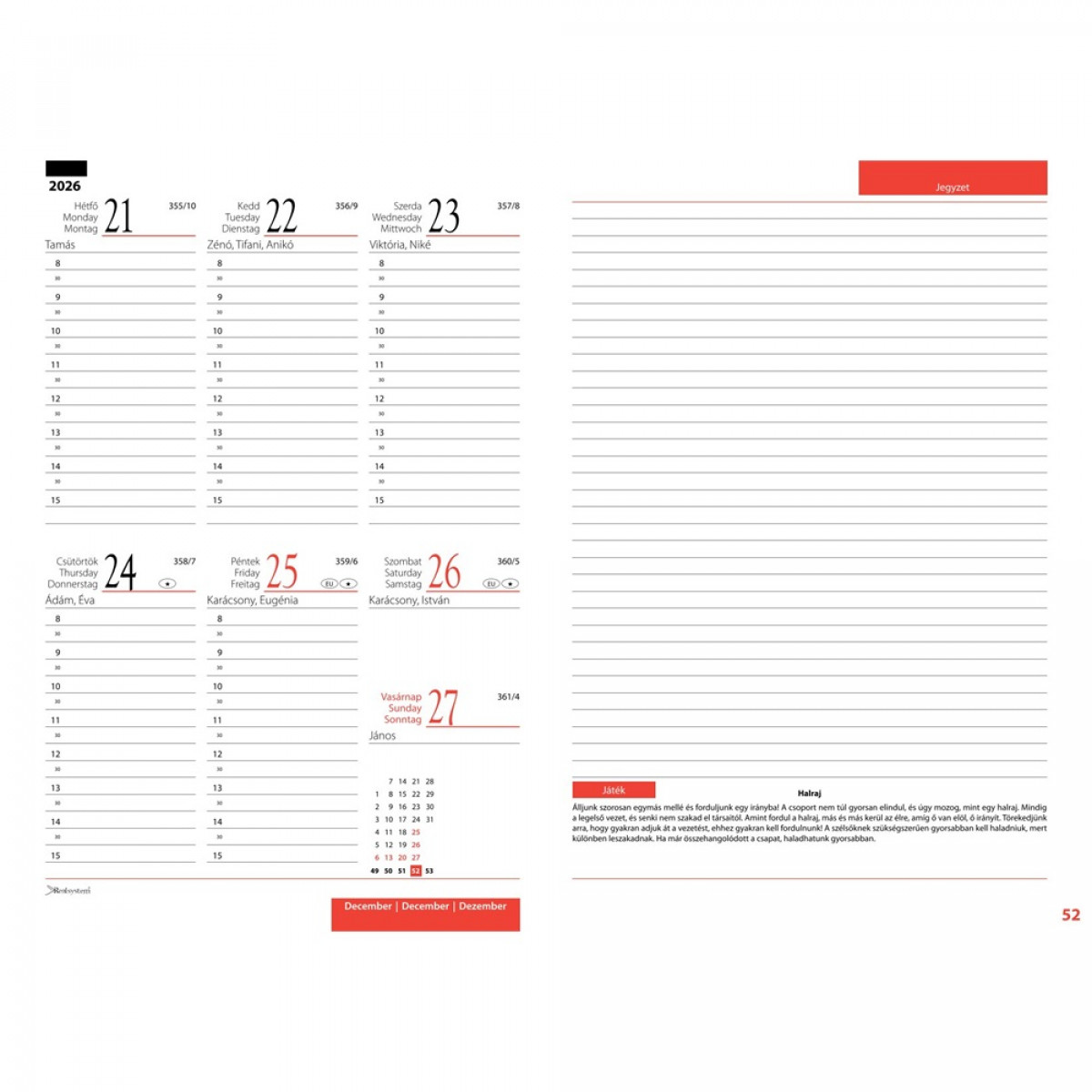 - 108 oldal heti beosztású naptár 2026. augusztus 17.- 2027. augusztus 22.-ig