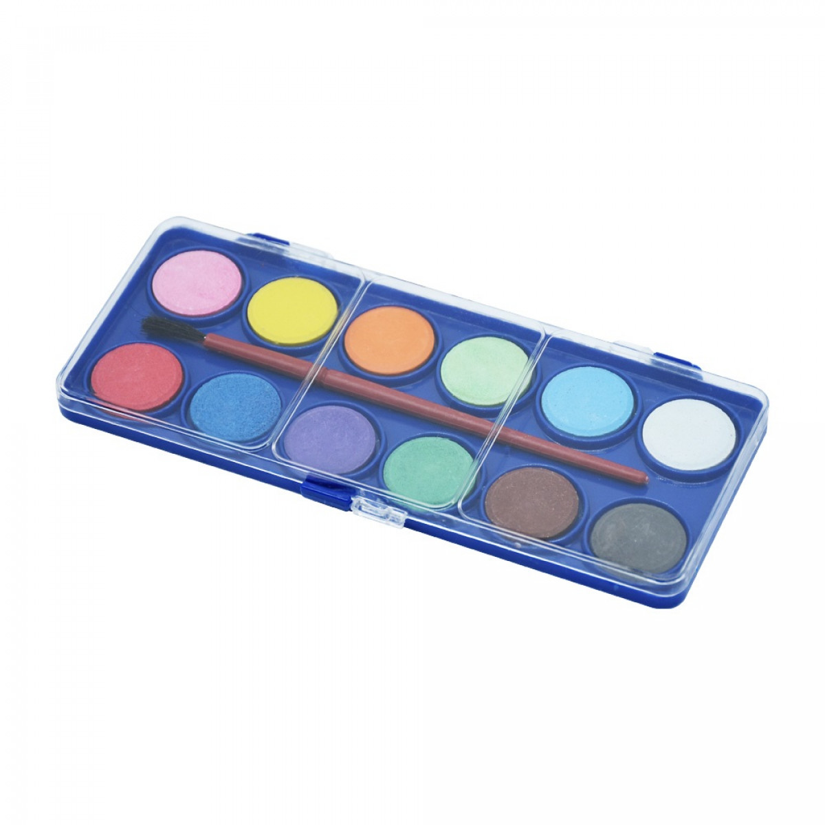 Vízfesték készlet, 12db-os, 22 mm festékgombokkal, szintetikus ecsettel